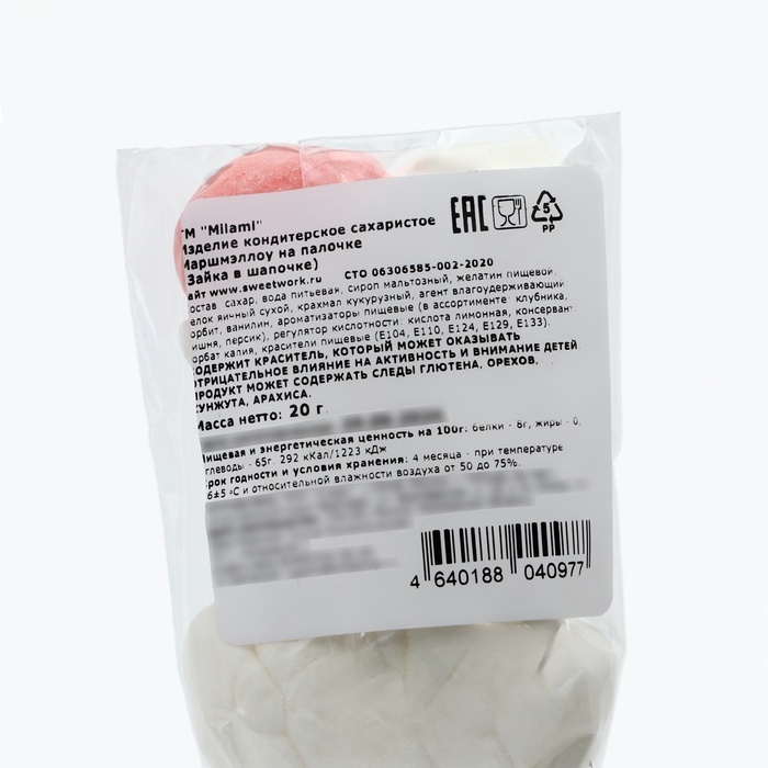 Маршмэллоу на палочке "Мишка с подарком", 20 г