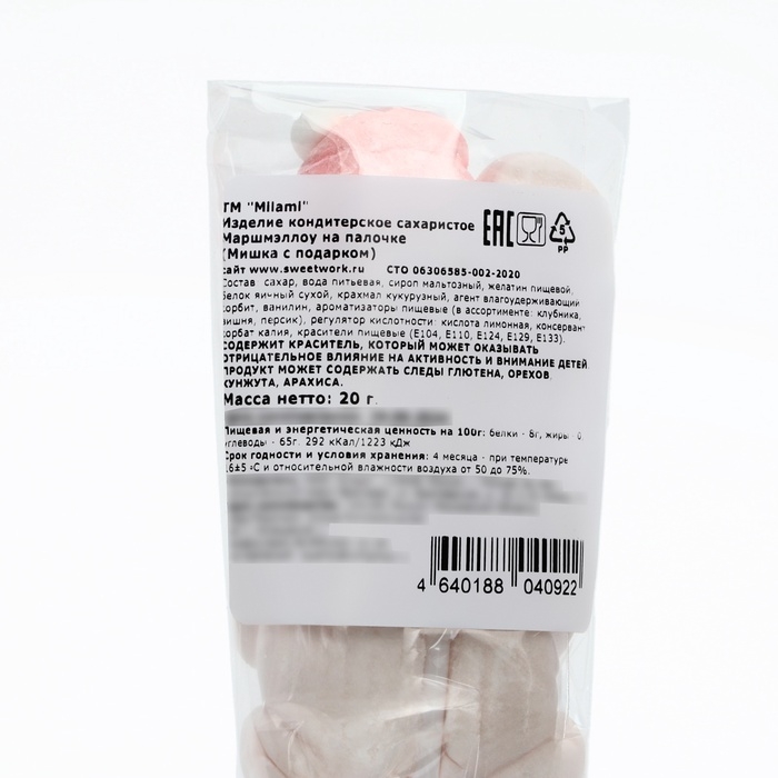 Маршмэллоу на палочке "Зайка в шапочке", 20 г