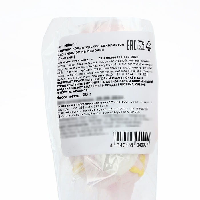 Маршмэллоу на палочке "Пингвин", 20 г