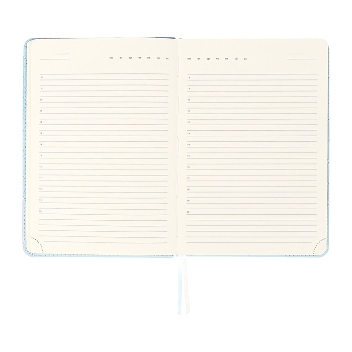 Ежедневник недатированный, A5, 136 листов, кожзам, deVENTE. Tailor, твердая обложка с поролоном, хлястик, перфорация, ляссе, блок 70%, голубой
