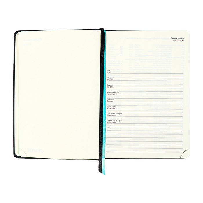 Ежедневник недатированный, A5, 136 листов, кожзам, deVENTE. Ultra, твердая обложка, тиснение фольгой, перфорация, ляссе, блок 70%, черный/голубой