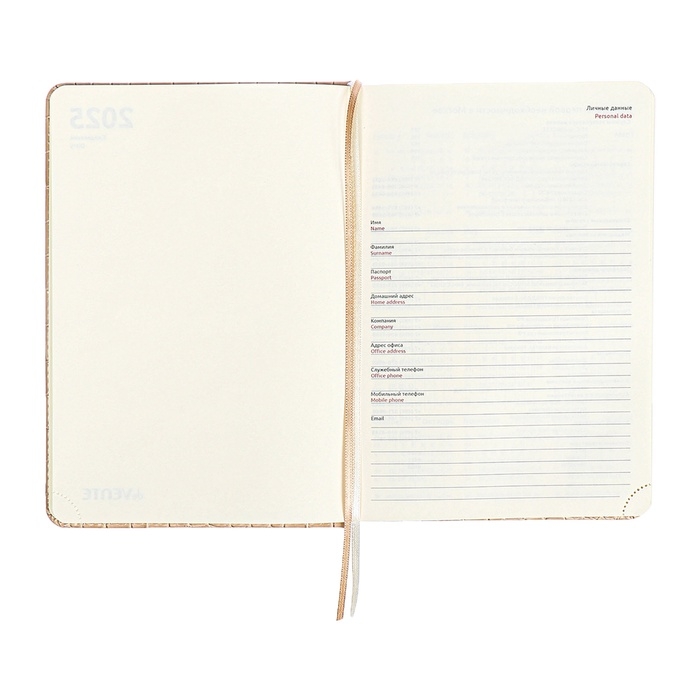 Ежедневник датированный 2025 A5 168 листов, deVENTE.Barbara, твердая обложка кожзам с поролоном, хлястик, перфорация, ляссе, блок 70, бежевый
