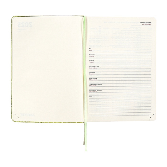 Ежедневник датированный 2025 года, A5, 168 листов, deVENTE. Barbara, твердая обложка кожзам с поролоном, перфорацией, ляссе, блок 70, зеленый