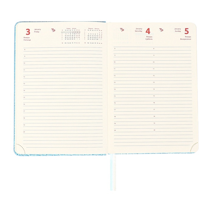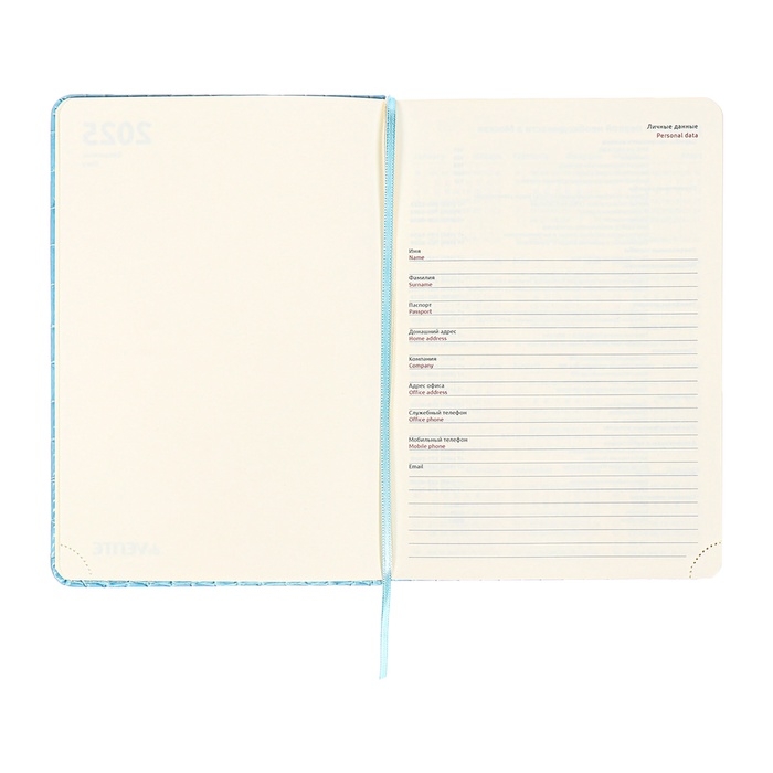 Ежедневник датированный 2025 года A5, 168 листов, deVENTE. Barbara, твердая обложка кожзам с поролоном, перфорацией, ляссе, блок 70, голубой
