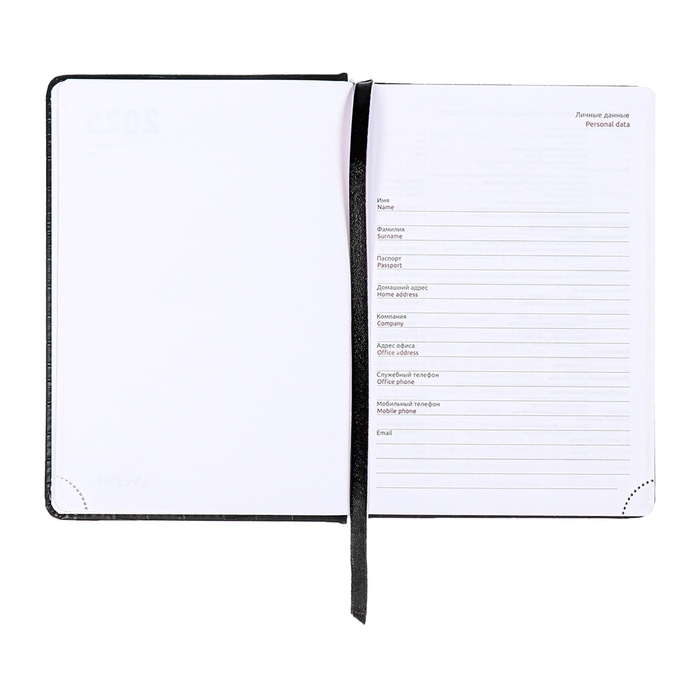 Ежедневник датированный 2025 B6 168 листов, deVENTE. Wild, твердая обложка кожзам с поролоном, перфорация, ляссе, блок 70,черный