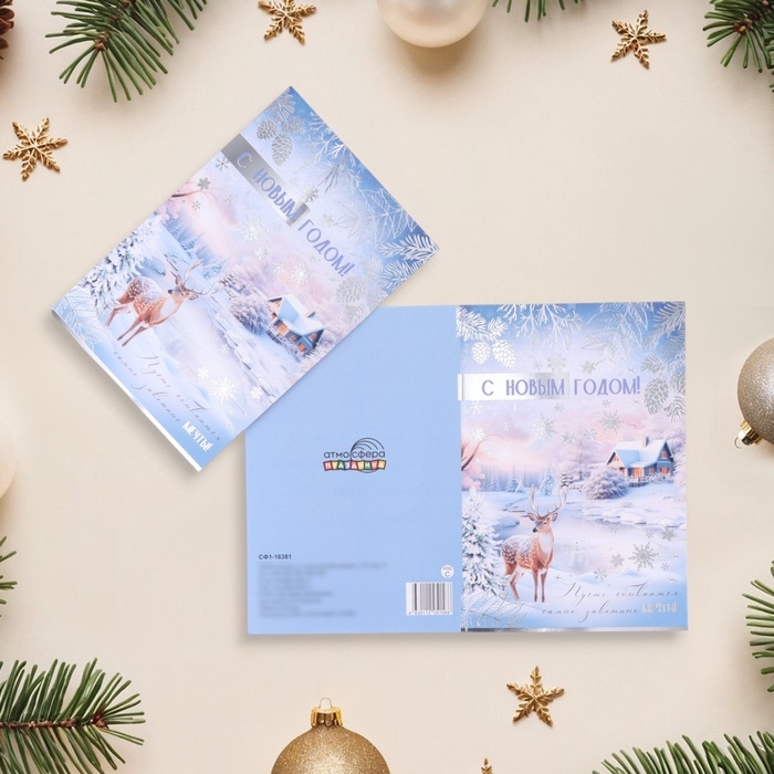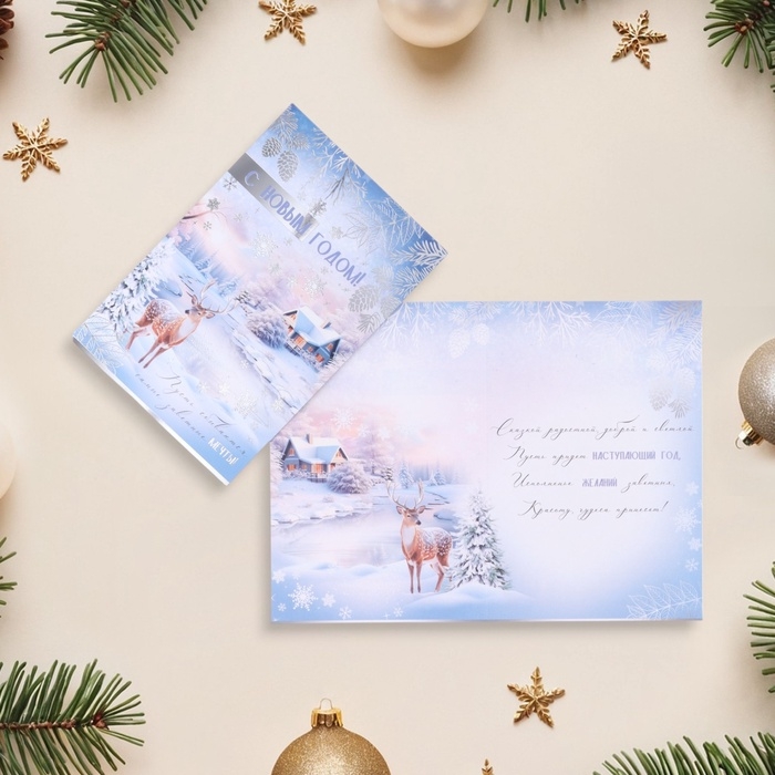 Открытка "С Новым Годом!" тиснение, олень, 18 х 12 см