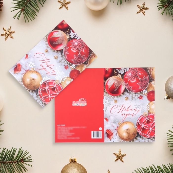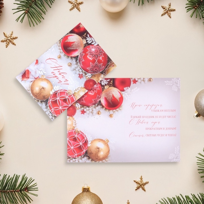 Открытка "С Новым Годом!" тиснение, шарики, 18 х 12 см