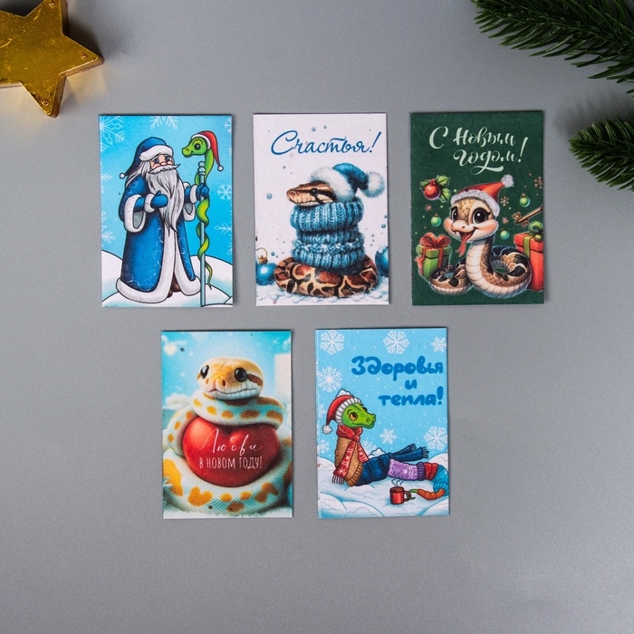 Набор открыток с семенами "Вырасти сам" "С новым годом" змеи 5*7см