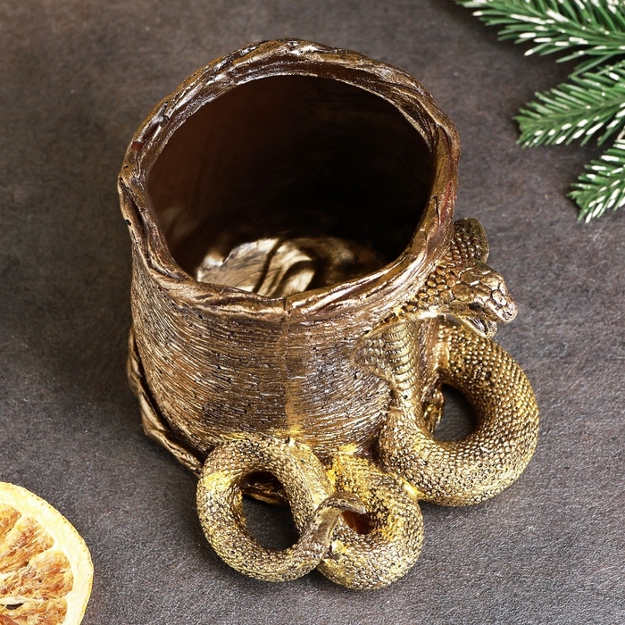 Кашпо - органайзер "Змея с корзиной" бронза, 10х11см