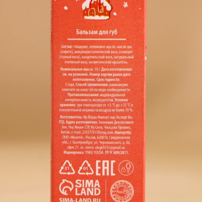 Бальзам для губ URAL LAB «Зимняя сладость», 10 г, аромат ванильного пряника, Новый Год