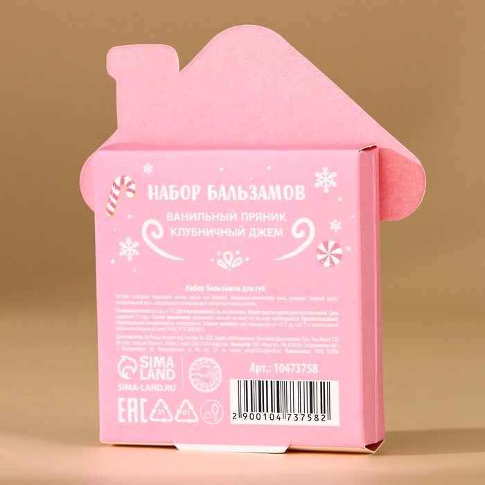 Подарочный набор URAL LAB: бальзам для губ, 2х10 г, аромат пряника и клубничного джема, Новый Год