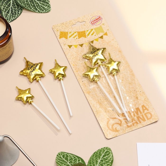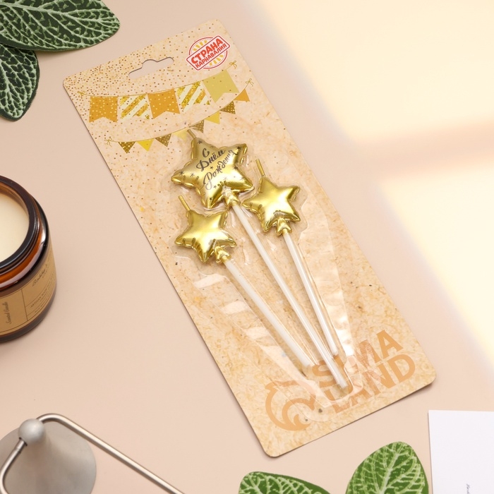 Набор свечей для торта, 3 шт "Воздушный шарик. Звезда" , золотые