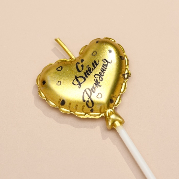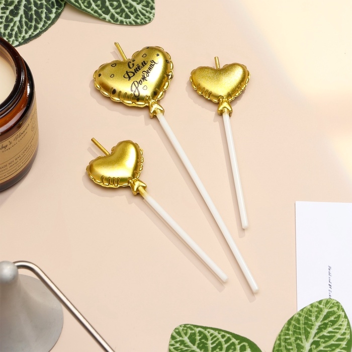 Набор свечей для торта, 3 шт "Воздушный шарик. Сердце" , золотые