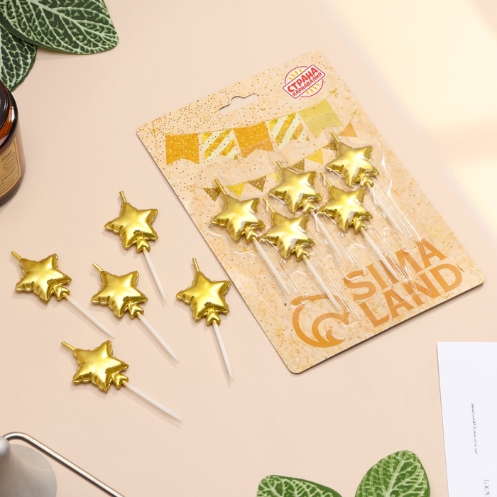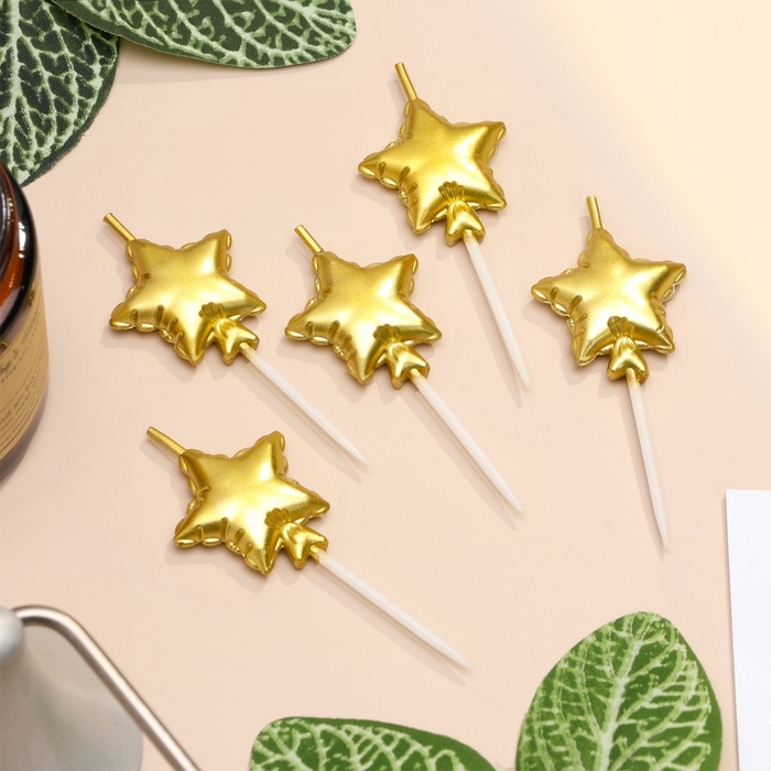 Набор свечей для торта. 5 шт "Воздушный шарик. Звезда", золотые