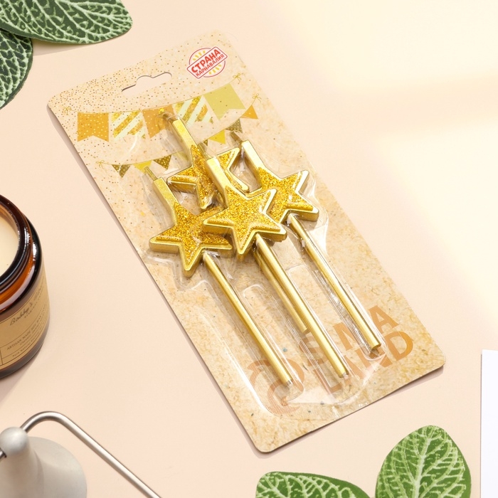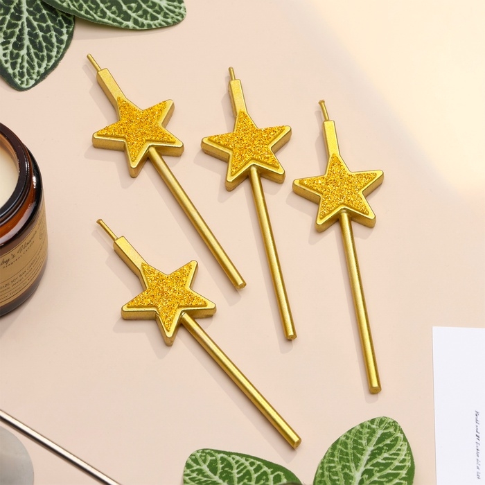 Набор свечей для торта, 4 шт "Блестящие звезды", золотые