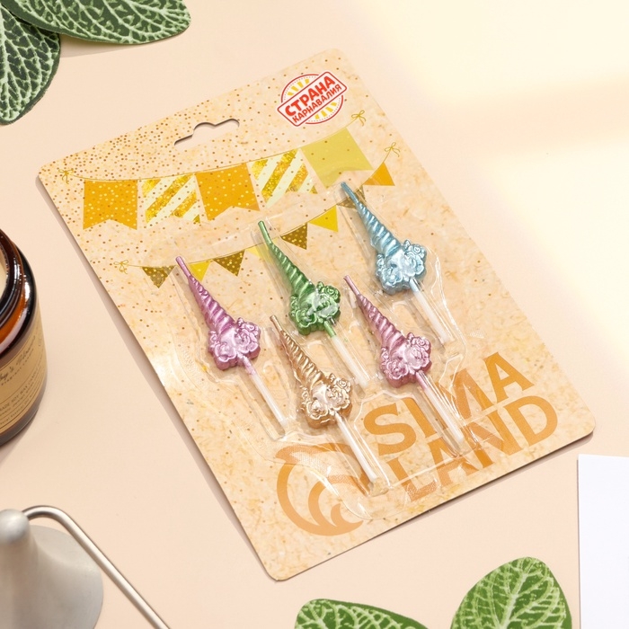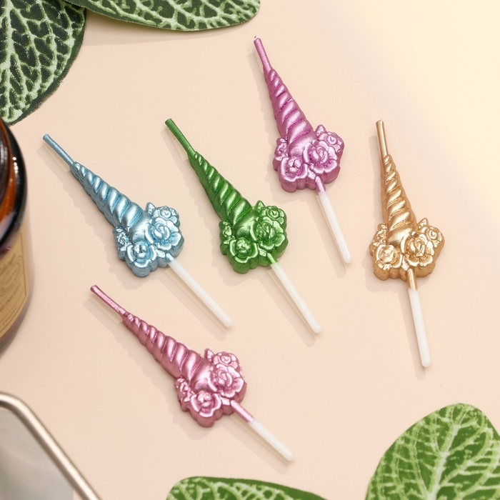 Набор свечей для торта, 5 шт "Праздничные единороги", разноцветные