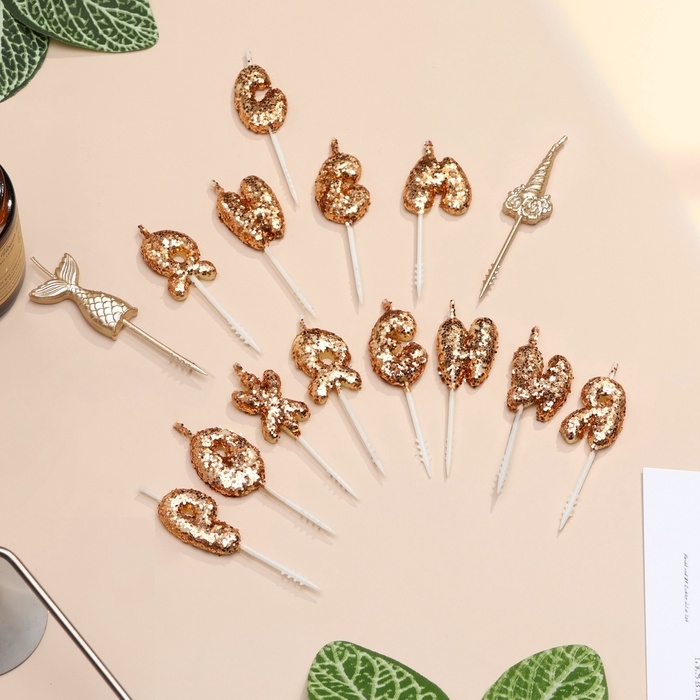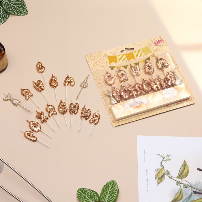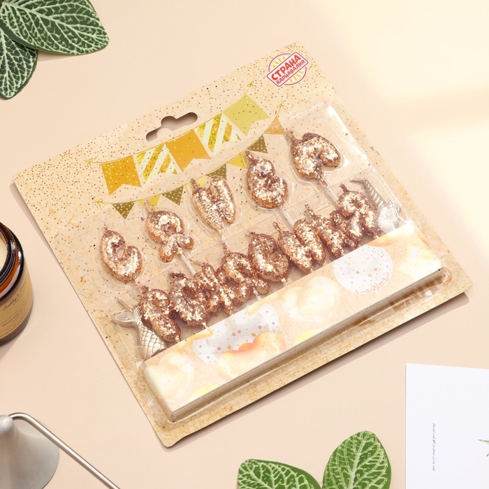 Свечи для торта "С днем рождения!", блестящие, золотые