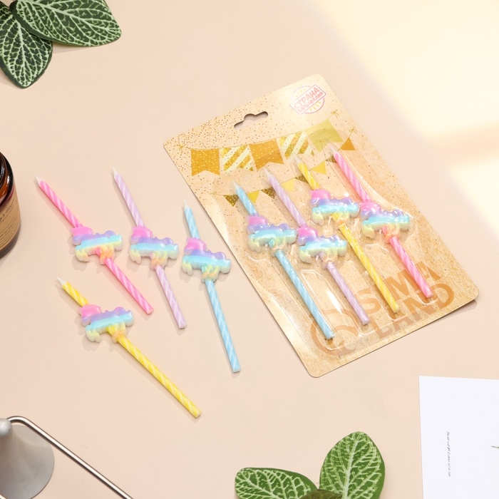 Набор свечей для торта, 4 шт "Радужные единороги", спиральные, разноцветные