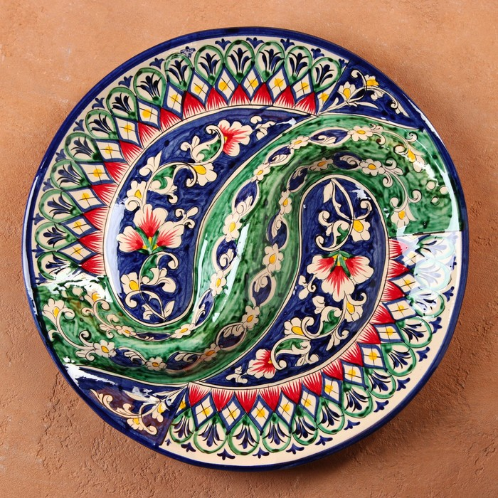 Менажница Риштанская Керамика "Цветы", 32 см, 2-х секционная, синяя