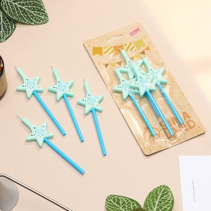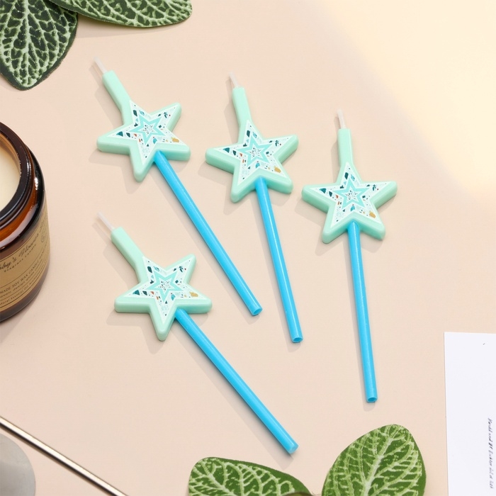 Свечи для торта, 4 шт "Волшебная палочка. Звёзды", голубой