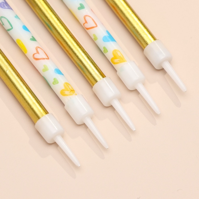 Свечи для торта "Сердца", 12 шт, золотые и белые