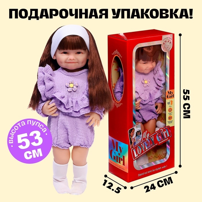 - Размер пупса 53 см — размер настоящего новорождённого.