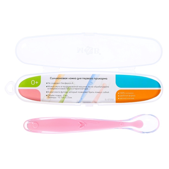 Ложка детская, для первого прикорма, в контейнере, розовая
