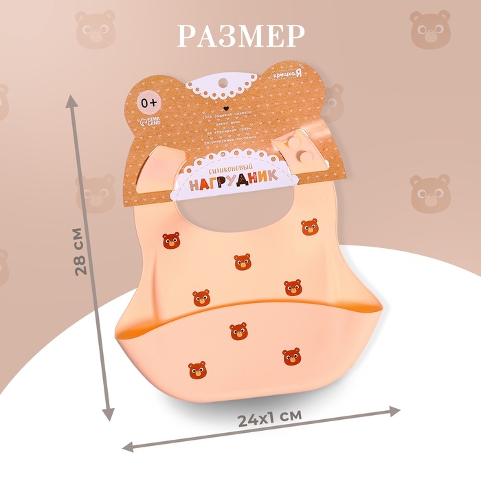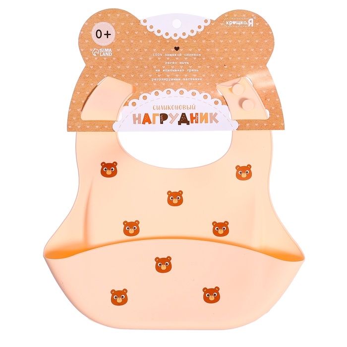 Нагрудник для кормления «Мишка», силиконовый, с карманом, бежевый