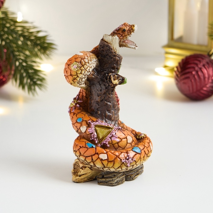 Фигура "Змея-мозаика с открытой пастью" 5х5х9см, цветная