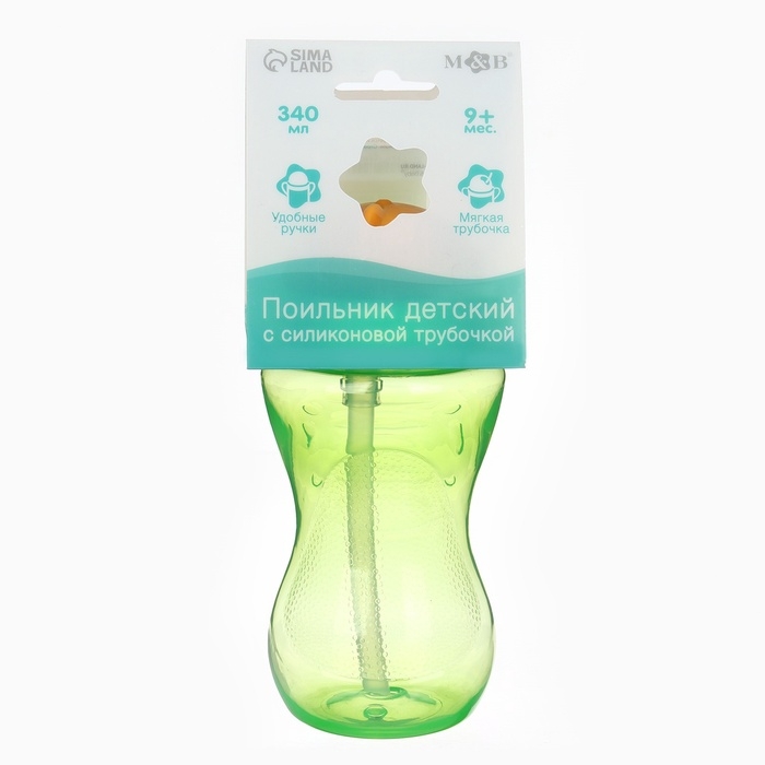 Поильник с силиконовой трубочкой, 340 мл., цвет Зеленый