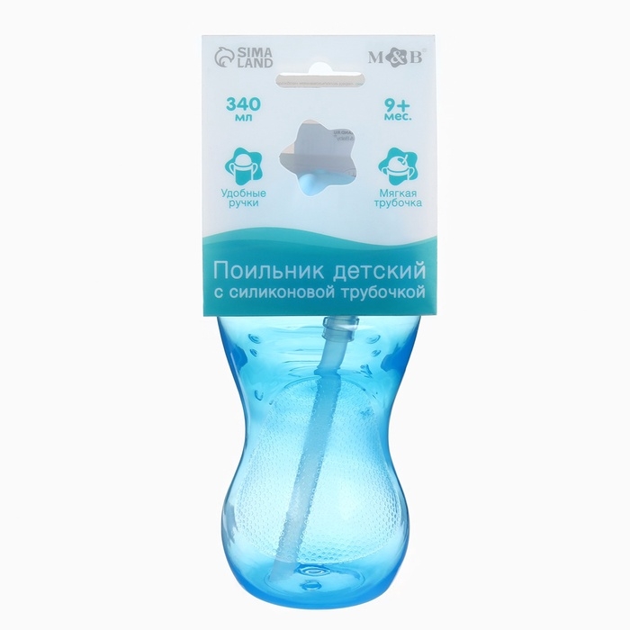 Поильник с силиконовой трубочкой, 340 мл., цвет Голубой