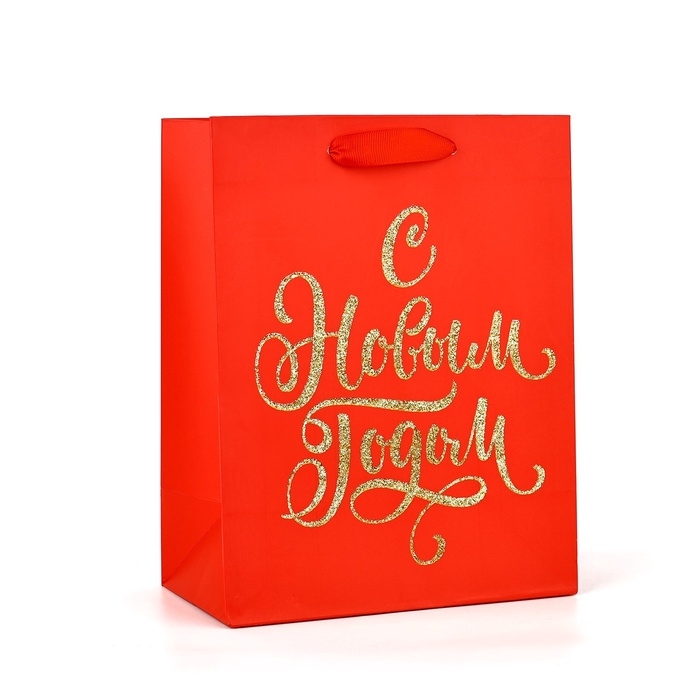 Пакет подарочный новогодний ламинированный «С Новым годом», глиттер, MS 18 х 23 х 10 см