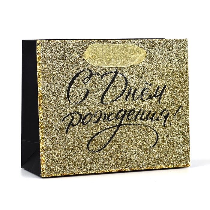Пакет ламинированный горизонтальный «С днём рождения», глиттер, S 15 х 12 х 5.5 см