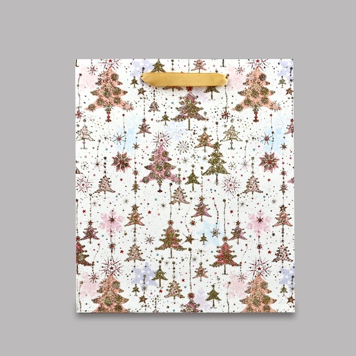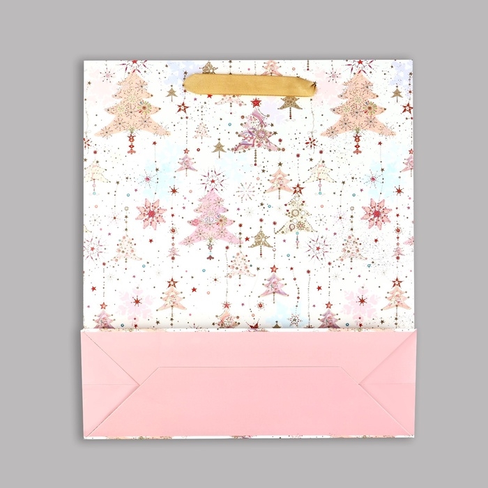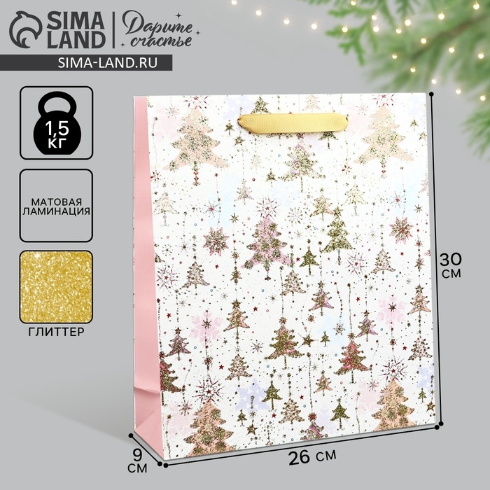 Пакет подарочный новогодний ламинированный «Ёлочки», M 30 х 26 х 9 см