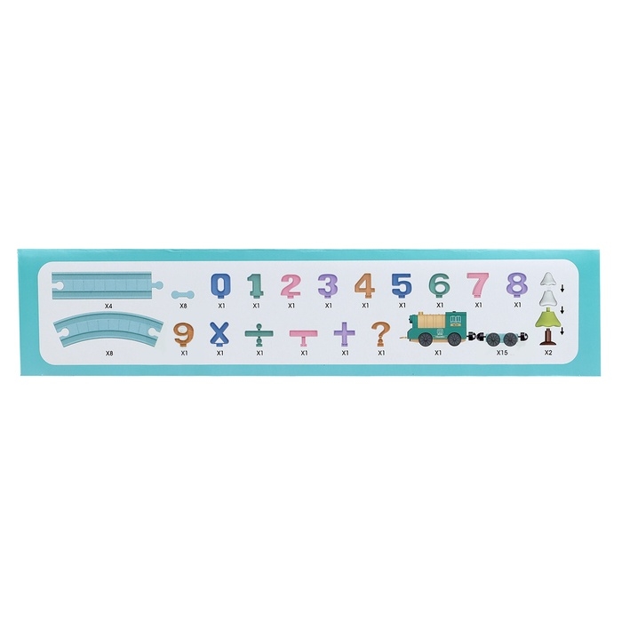 - В наборе 16 вагонов поезда со знаками: 10 цифр и 5 математических символов.