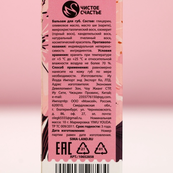 Бальзам для губ, 10 г, аромат ягод, ЧИСТОЕ СЧАСТЬЕ