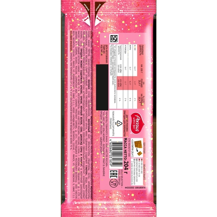 Шоколад молочный, "Россия", со вкусом шампанское розе, 204 г