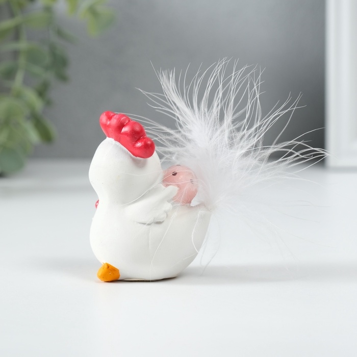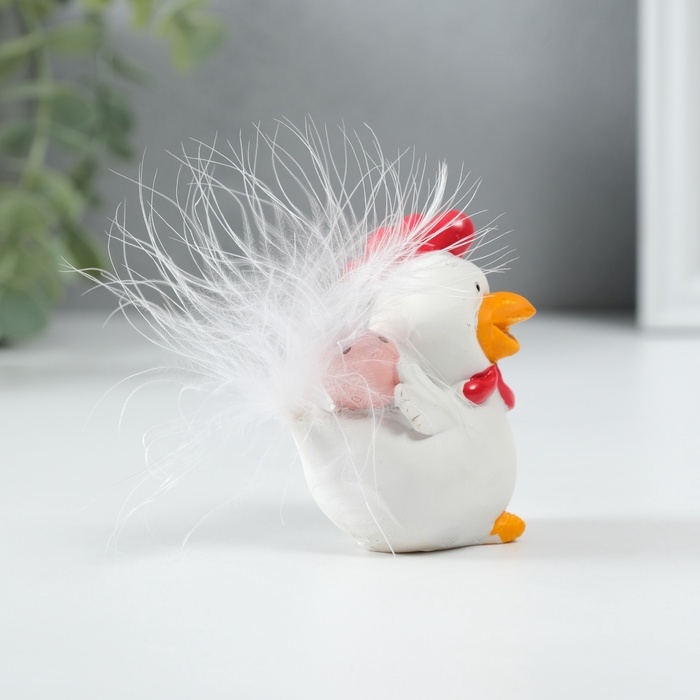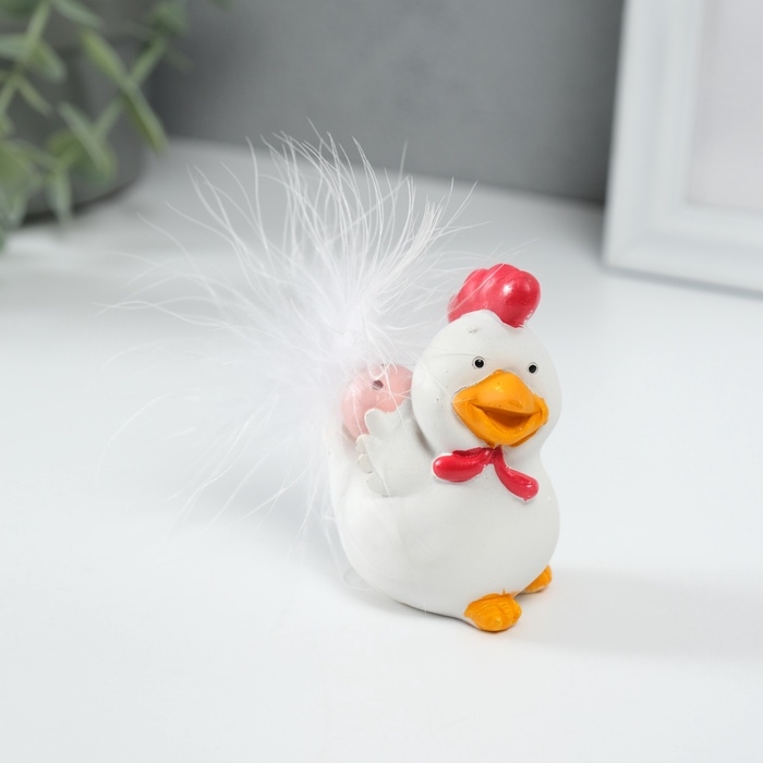 Сувенир полистоун "Петушок белый с розовым яйцом" 5х4х6,5 см