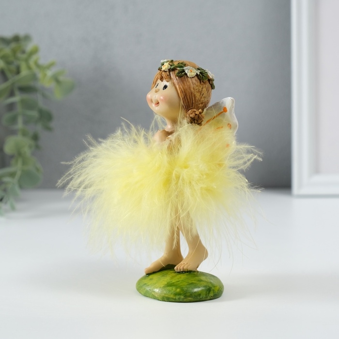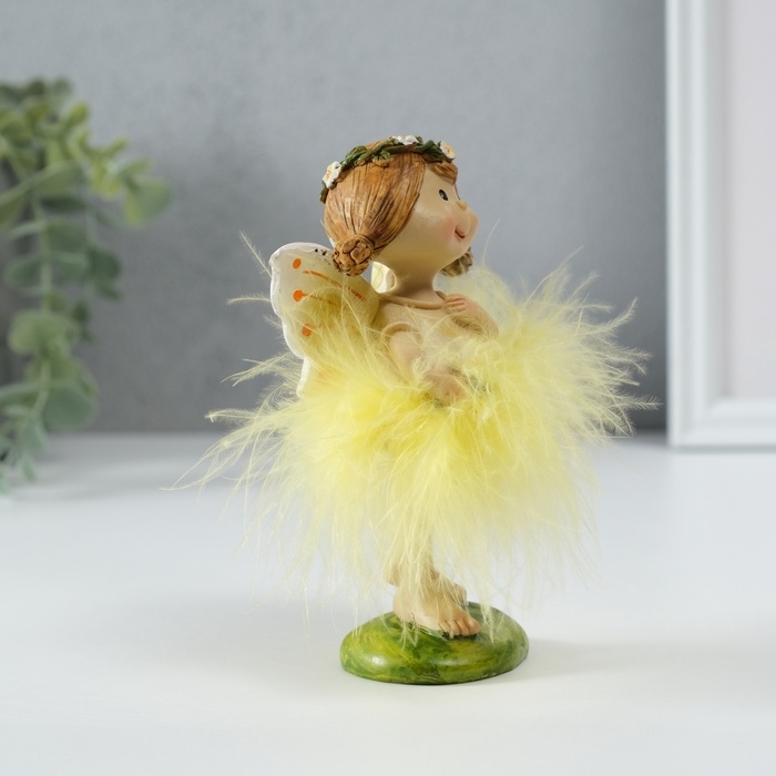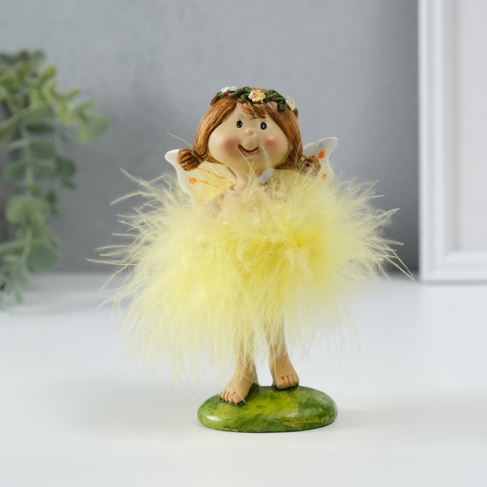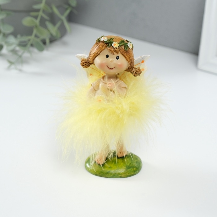 Сувенир полистоун "Малышка фея в жёлтом платье, с цветочком" 8х6х13 см