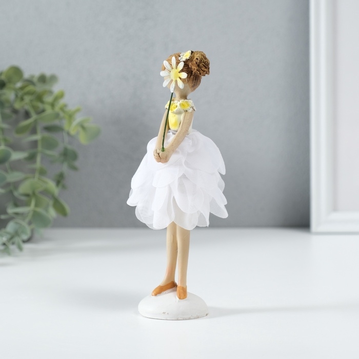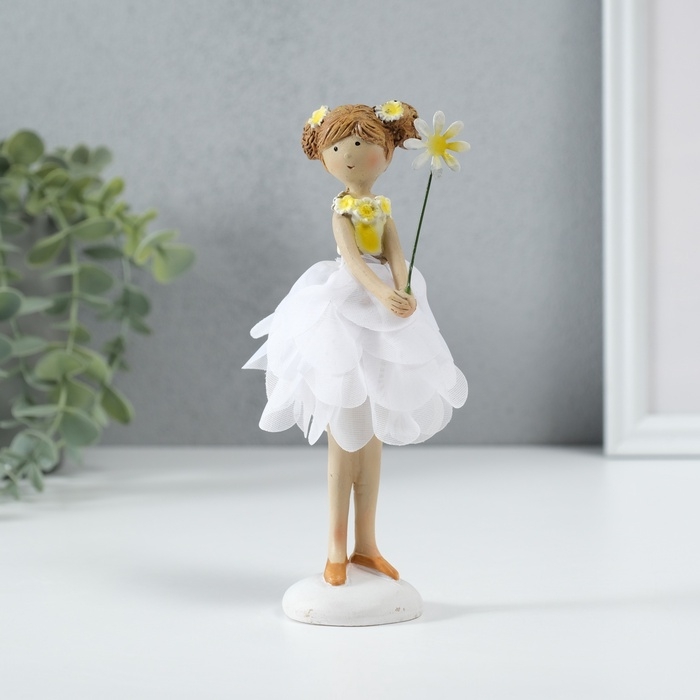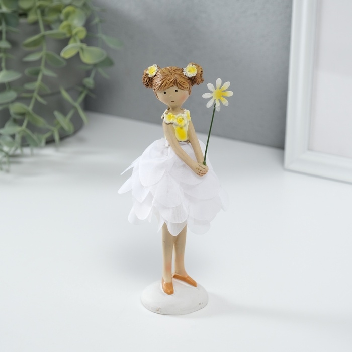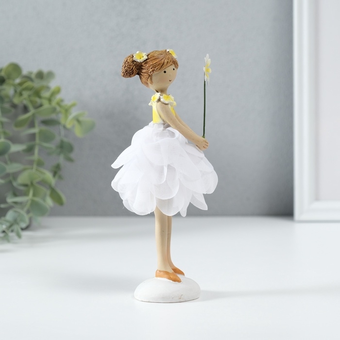Сувенир полистоун "Девочка фея в бело-жёлтом платье с палочкой" 7х7х16,5 см