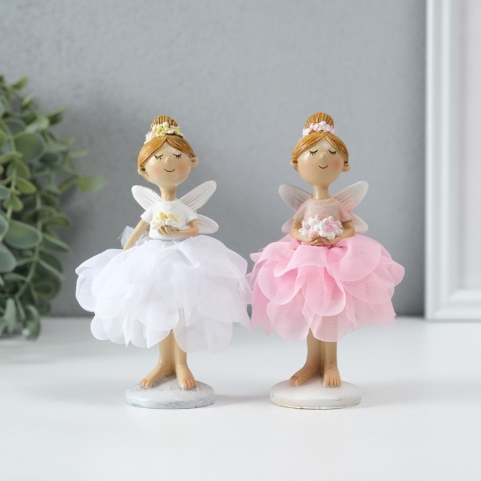 Сувенир полистоун "Девочка фея в цветочном платье с букетом" МИКС 8х8х13,5 см