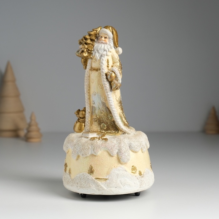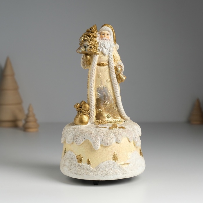 Сувенир полистоун музыка "Дед Мороз в коричневой шубе с ёлкой" 10х10х18 см