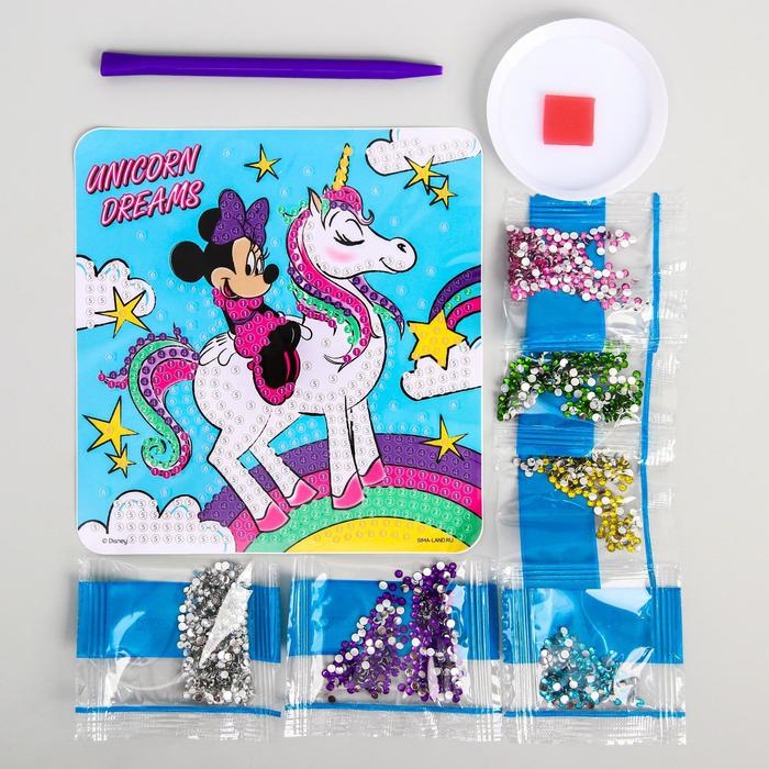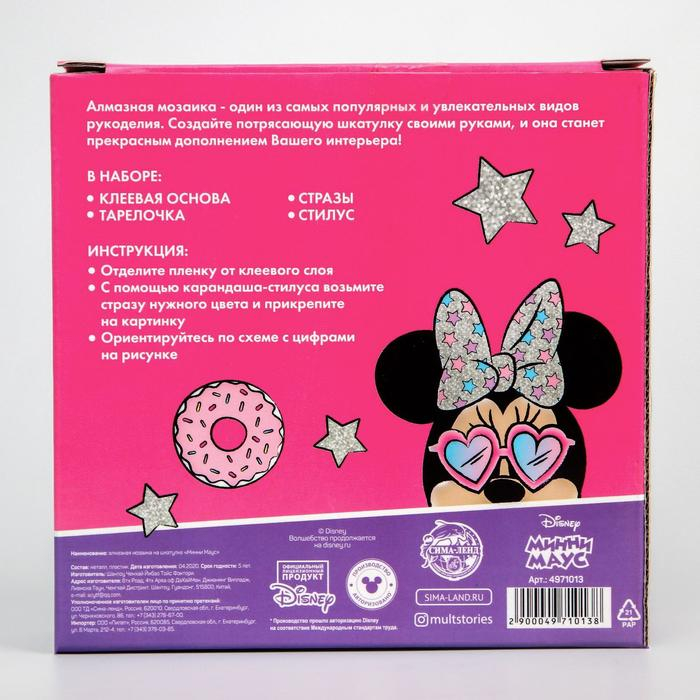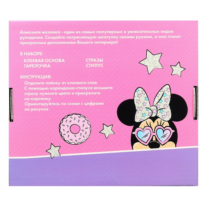 Алмазная мозаика на шкатулке, 14х14 см, Минни Маус и Единорог