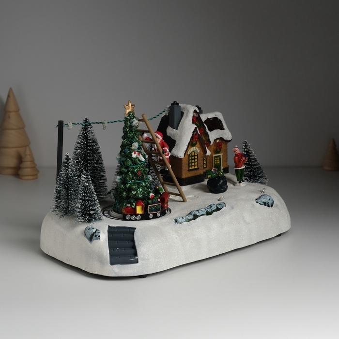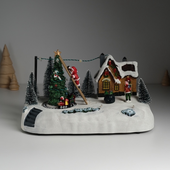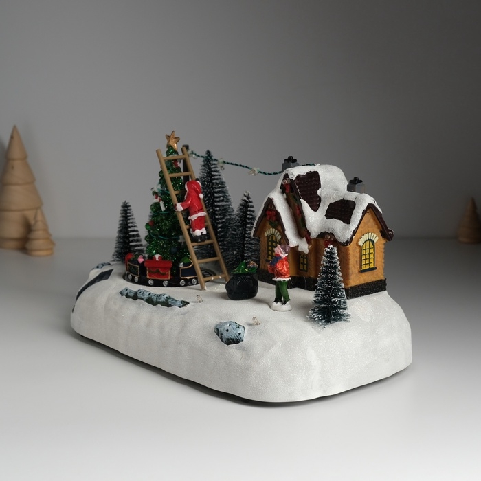 Сувенир пластик световой "Дед Мороз украшает ёлочку" крутится 26,5х16х17,5 см