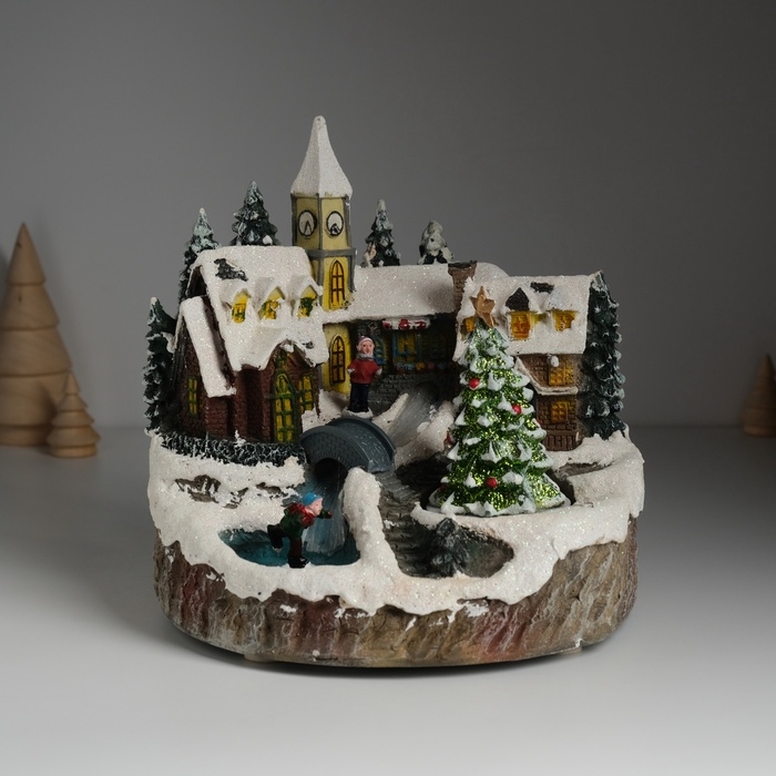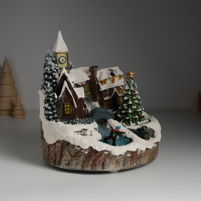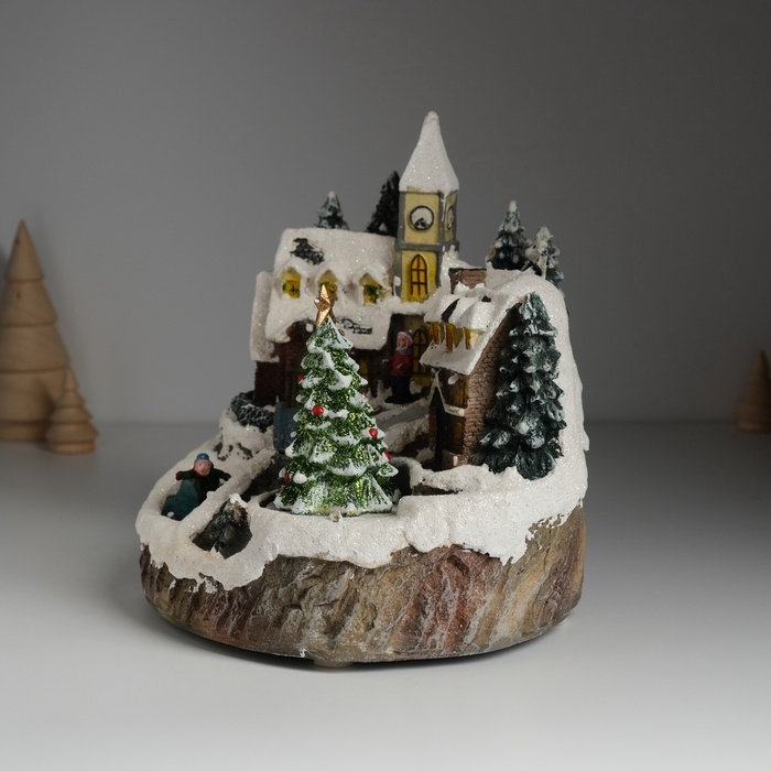 Сувенир пластик световой "Новогодняя улочка" крутится 20,5х17х20,5 см