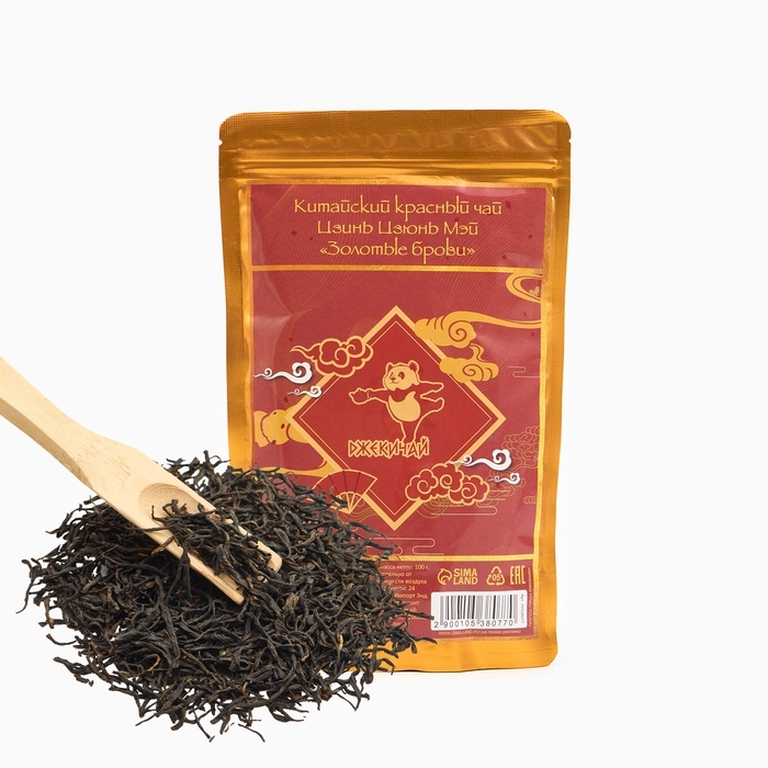 Китайский чёрный чай «Золотые брови» («Цзинь Цзюнь Мэй») — это знаменитый красный чай с севера провинции Фуцзянь. Он производится из молодых весенних почек, которые придают чаю сложный, богатый аромат и нежный вкус. В напитке присутствуют нотки хлеба, шоколада и клубники, а также сладкое послевкусие с кисло-сладким фоном. Этот чай активизирует работу нервной системы, способствует уменьшению спазмов в бронхах и обладает мочегонным эффектом.