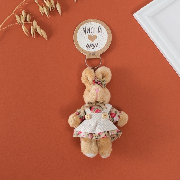 Брелок текстиль "Зайка в цветочном сарафане" 8,5х4х14 см