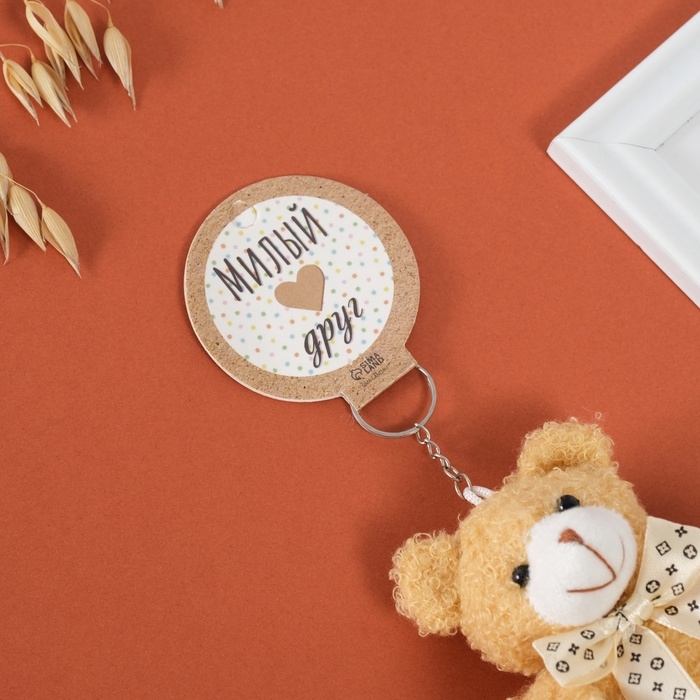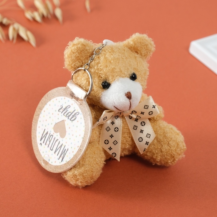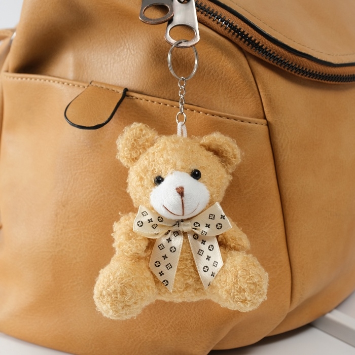 Брелок текстиль "Мишка с бежевым бантиком" 9х6х9,5 см