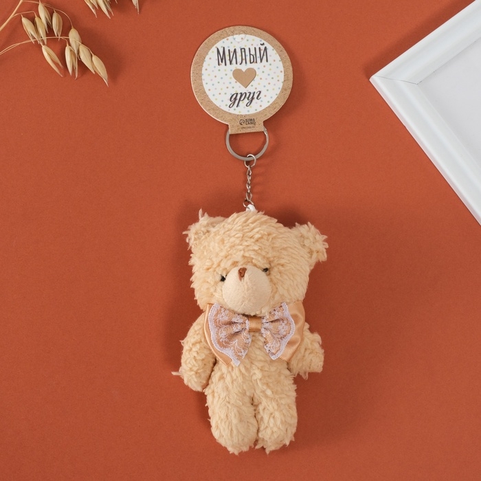 Брелок текстиль "Мишка с ажурным бантиком" 8х5х13 см