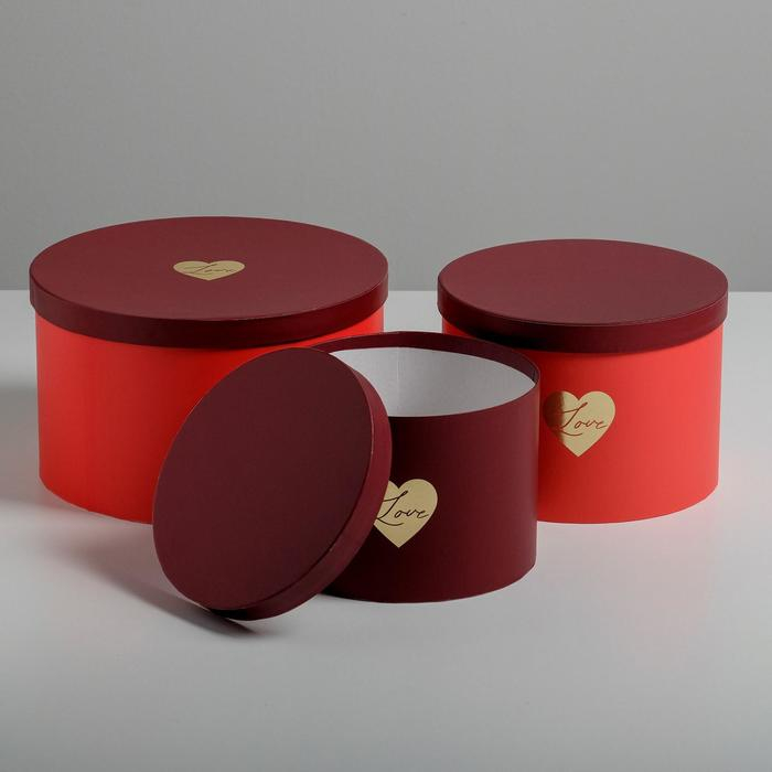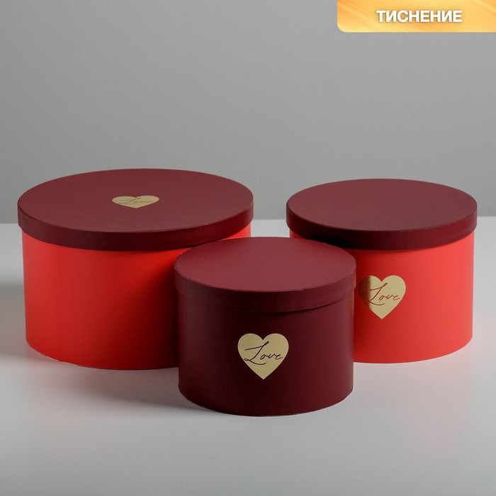 Набор шляпных коробок для цветов 3 в 1, упаковка подарочная, «Красный», 18 х 13 см - 25 х 15 см